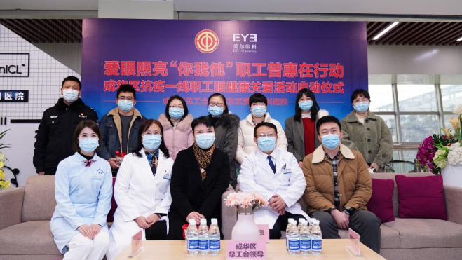 爲緻敬抗疫英雄,助力疫情防控,12月30日下午,成都市成華區總工會聯合三台華廈眼科醫院有限公司舉行了“成華區抗疫一線(xiàn)職工眼健康關愛活動”啓動儀式,由東區愛爾健教部副主任主持,成華區總工會黨組織成員(yuán)副主席楊祝英女士、業務部朱靜部長、業務部成員(yuán)餘露女士;三台華廈眼科醫院有限公司CEO 盧院長;屈光科主任魯齊主任、屈光科護士長曾珊女士出席此次儀式。